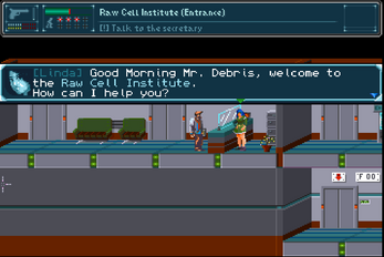 The game features a advanced dialogue system with scriptable dialogues, actors can have a portrait with several face expressions.